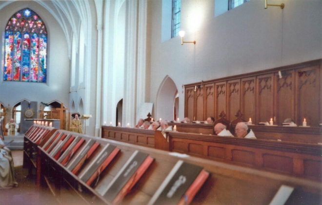Unceasing prayer is the continual readiness to surrender to the will of God. It is an inner climate of attention to his Word and to his indwelling Love. To foster and express this hidden prayer, the monastic community gathers several times during the day to chant the divine office. This is composed primarily of psalms, hymns, and scripture readings. These respond to the changing themes of the liturgical year and immerse the monk ever more deeply in the mystery of Christ.